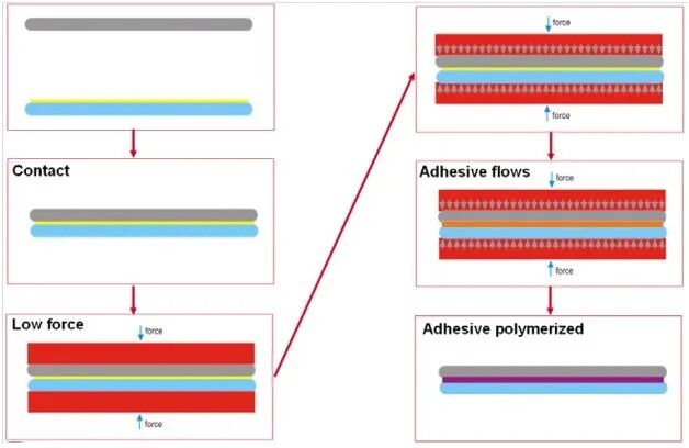 ພັນທະບັດຄວາມຮ້ອນໂລຫະແມ່ນຂະບວນການທີ່ໃຊ້ໃນການຫຼຸດຜ່ອນຄວາມສ່ຽງໃນການປຸງແຕ່ງ wafer ບາງໆທີ່ສຸດໂດຍການຜູກມັດກັບພື້ນທີ່ໃຫ້ກັບການສະຫນັບສະຫນູນກົນຈັກ (ແຕ່ບໍ່ເຊື່ອມຕໍ່ໄຟຟ້າ). ຫຼັງຈາກການສະຫນັບສະຫນູນກົນຈັກສໍາເລັດແລ້ວ, ຕ້ອງມີຂະບວນການ debonding ແມ່ນໂດຍໃຊ້ວິທີການຄວາມຮ້ອນ, ເລເຊີແລະວິທີການ.