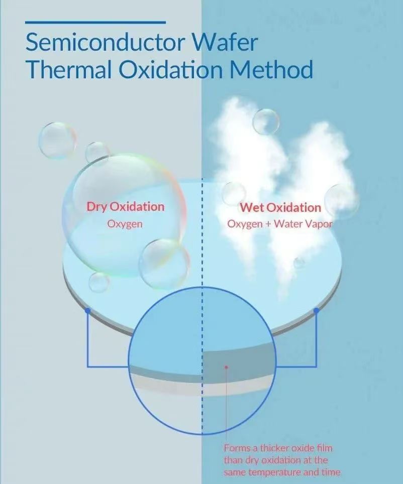 ໃນຂະບວນການຜຸພັງຮາກ, Silicon Wafer ແມ່ນຮ້ອນກັບອຸນຫະພູມສູງ, ໃນນັ້ນຈຸດທີ່ມີອົກຊີເຈນແລະໂມເລກຸນໄຮໂດຼລິກທີ່ປະສົມເຂົ້າກັນເພື່ອປະກອບເປັນທາດອາຍຜິດໂດຍບໍ່ເສຍຄ່າສູງ. ທາດອາຍຜິດເຫຼົ່ານີ້ມີປະຕິກິລິຍາກັບ Silicon Wafer ທີ່ຈະປະກອບເປັນຮູບເງົາສະຫຼາມ.