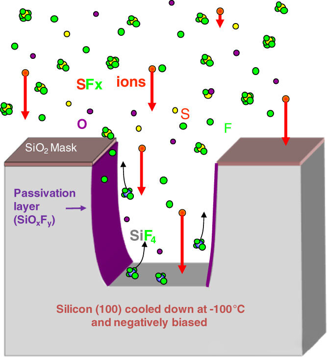 ການອອກກໍາລັງກາຍແຫ້ງໂດຍປົກກະຕິແມ່ນຂະບວນການປະຕິບັດການກະທໍາທາງດ້ານຮ່າງກາຍແລະສານເຄມີ, ດ້ວຍເຕັກນິກການລະເບີດຂອງ ion. ໃນລະຫວ່າງການ Etching, ມຸມທີ່ເກີດຂື້ນແລະການແຈກຢາຍພະລັງງານຂອງ ions ສາມາດບໍ່ເທົ່າກັນ.