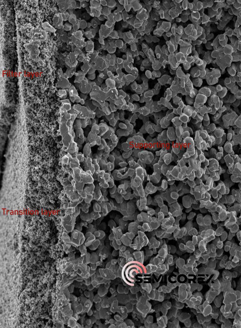 ຄວາມແມ່ນຍໍາສູງ: ໃນຂະນະທີ່ຂະຫນາດ pore ມາດຕະຖານແມ່ນ 0.1 μm, ເຕັກໂນໂລຊີຂອງພວກເຮົາສາມາດບັນລຸຄວາມແມ່ນຍໍາຂອງການຕອງສູງສຸດຂອງ 20 nm, ບັນລຸເຖິງ ultrafiltration spectrum ເພື່ອເອົາເຖິງແມ່ນວ່າອະນຸພາກຍ່ອຍ micron ທີ່ດີທີ່ສຸດ.