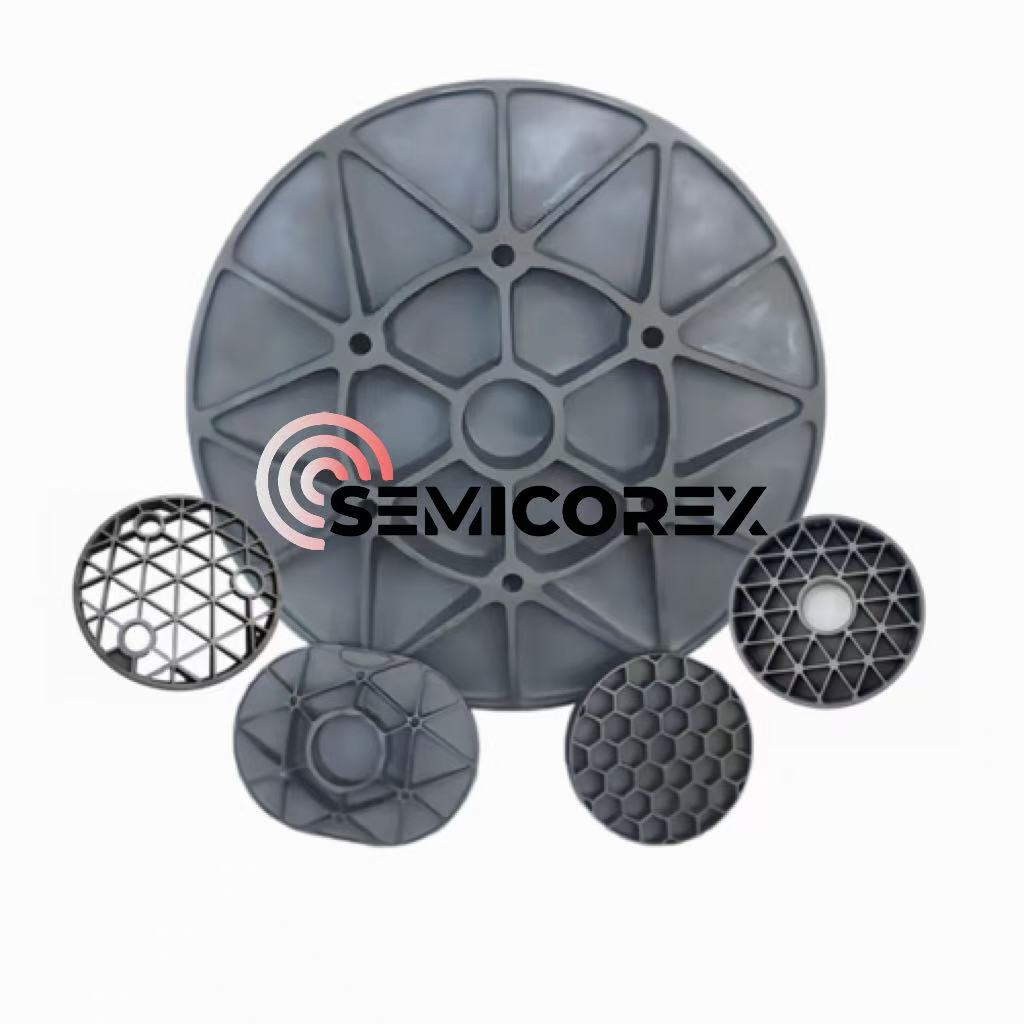 ເພື່ອປັບປຸງຄວາມສະດວກໃນການດໍາເນີນງານແລະຫຼຸດຜ່ອນການບໍລິໂພກພະລັງງານຂອງອຸປະກອນ, Semicorex ໃຊ້ຄວາມແຂງສູງຊິລິຄອນຄາໄບເພື່ອຜະລິດກະຈົກກະຈົກແລະປະກອບໂຄງສ້າງຂອງເສັ້ນດ່າງທີ່ຊັບຊ້ອນພາຍໃນຊ່ອງຫວ່າງເພື່ອບັນລຸຄວາມຕ້ອງການທີ່ມີນ້ໍາຫນັກເບົາຂອງກະຈົກສະທ້ອນແສງຊິລິຄອນຄາໄບ. ການປະສົມປະສານອັນຄ່ອງແຄ້ວຂອງການເລືອກວັດສະດຸແລະການອອກແບບໂຄງສ້າງຊ່ວຍຫຼຸດຜ່ອນນ້ໍາຫນັກຂອງກະຈົກ silicon carbide ຢ່າງຫຼວງຫຼາຍໃນຂະນະທີ່ຮັກສາຄວາມແຂງຂອງມັນ. ດັ່ງນັ້ນ, ຊິລິໂຄນຄາໄບທີ່ສະທ້ອນເຖິງກະຈົກໄດ້ຄອບຄອງຕໍາແຫນ່ງປະໂຫຍດທີ່ບໍ່ສາມາດທົດແທນໄດ້ໃນຂົງເຂດຕ່າງໆເຊັ່ນ: ຍານອາວະກາດແລະການສໍາຫລວດພື້ນທີ່ເລິກ.